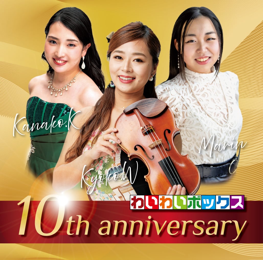 わいわいボックス 放送10周年を記念して、ヴァイオリン 渡邊響子、ピアノ 小堺香菜子、ヴォーカル 大橋麻鈴の3人による演奏を収録。